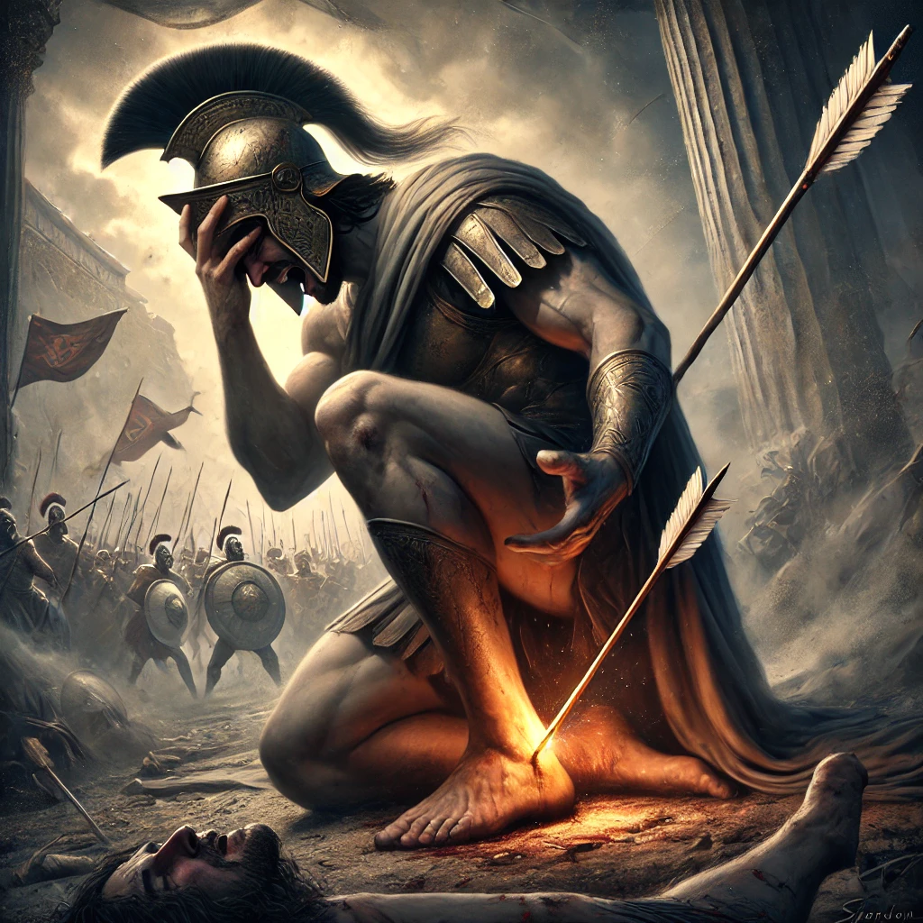 • 파리스의 복수: 아킬레우스는 파트로클로스의 죽음을 복수했지만, 그의 최후는 트로이의 왕자 파리스의 손에 달려 있었습니다. 아프로디테의 도움을 받은 파리스는 아폴론이 이끄는 화살을 쏘아, 아킬레우스의 유일한 약점인 발뒤꿈치를 맞추었습니다. 그 화살은 치명적이었고, 아킬레우스는 결국 전장에서 목숨을 잃었습니다.