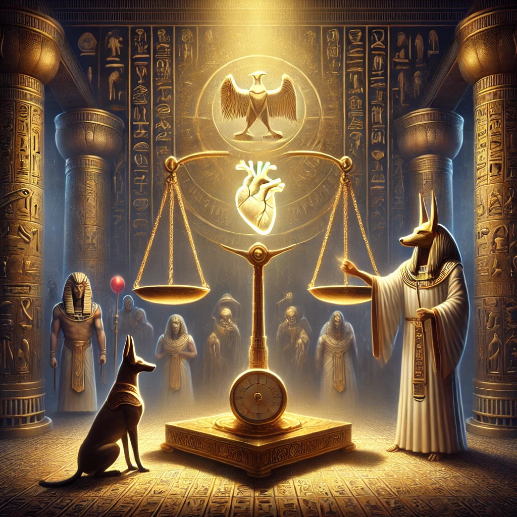 • 심판의 중심은 **마아트(Maat)**의 깃털과 죽은 자의 마음을 저울에 올리는 의식이었습니다. 마아트는 진리, 정의, 질서를 상징하는 여신으로, 그녀의 깃털은 도덕성과 순수함의 기준을 나타냅니다.