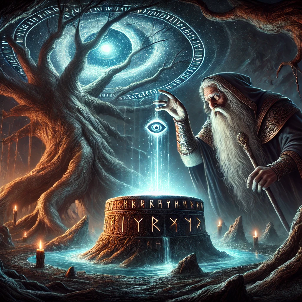 북유럽 신화에서 오딘(Odin)은 지혜와 지식을 갈구하는 신으로, 우주와 운명을 이해하기 위해 자신을 희생하는 강력한 이야기를 남겼습니다. 특히, 그는 **미미르의 샘(Mímir’s Well)**에서 지혜를 얻기 위해 자신의 한쪽 눈을 희생한 것으로 유명합니다. 이 이야기는 지혜를 얻기 위해 필요한 대가와 희생의 중요성을 상징적으로 보여줍니다.