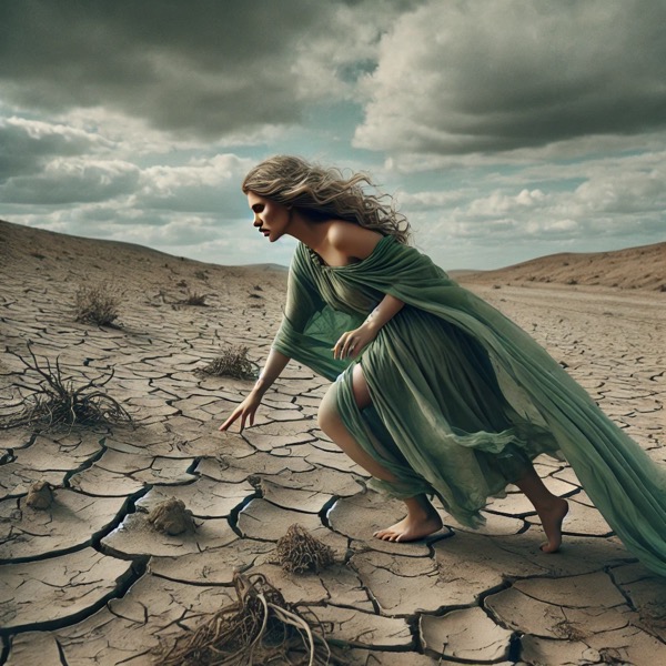 분노한 데메테르가 대지를 저주하자, 땅은 메마르고 곡식이 자라지 않았어요. 나무는 잎을 떨구고, 강은 말라갔어요. 인간들은 굶주림에 시달리며 신들에게 기도했어요.