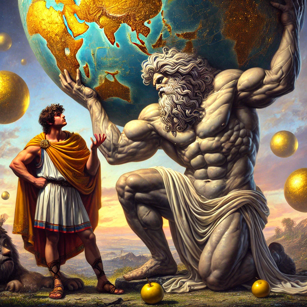 그러나 헤라클레스는 꾀를 내어 아틀라스에게 ‘잠시만 하늘을 다시 떠받쳐 달라’고 부탁한 뒤, 그가 방심한 틈을 타 황금 사과를 들고 도망쳤다.