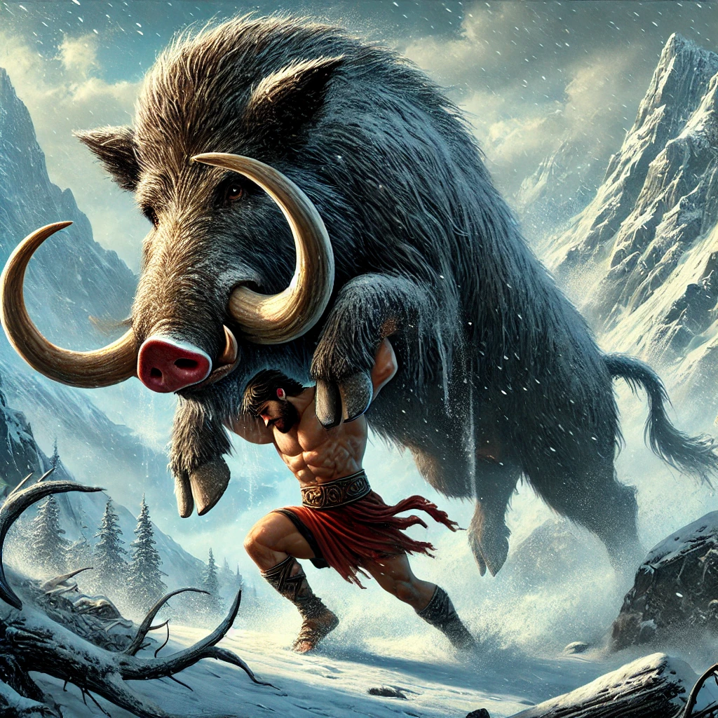 Heracles’ next task was to capture the enormous Erymanthian Boar alive.