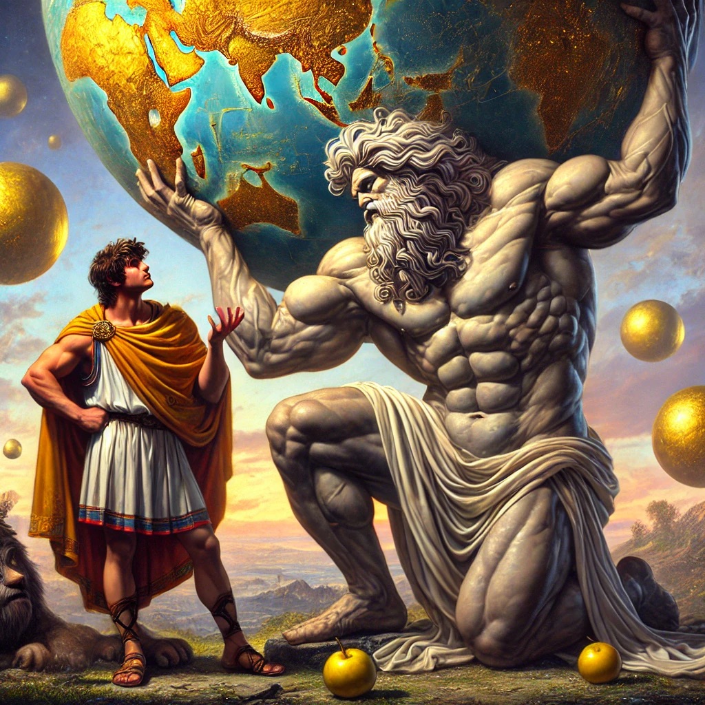 He sought the help of Atlas, who held up the sky. Heracles offered to bear Atlas’ burden if he would fetch the apples. Atlas agreed, but upon returning, he attempted to leave Heracles with the task of holding up the sky. However, Heracles tricked him into taking the burden back and escaped with the apples.