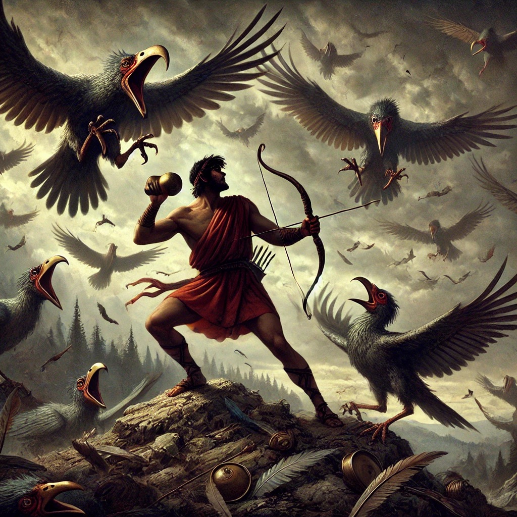 A flock of man-eating birds, dedicated to the god Ares, terrorized the region of Arcadia.