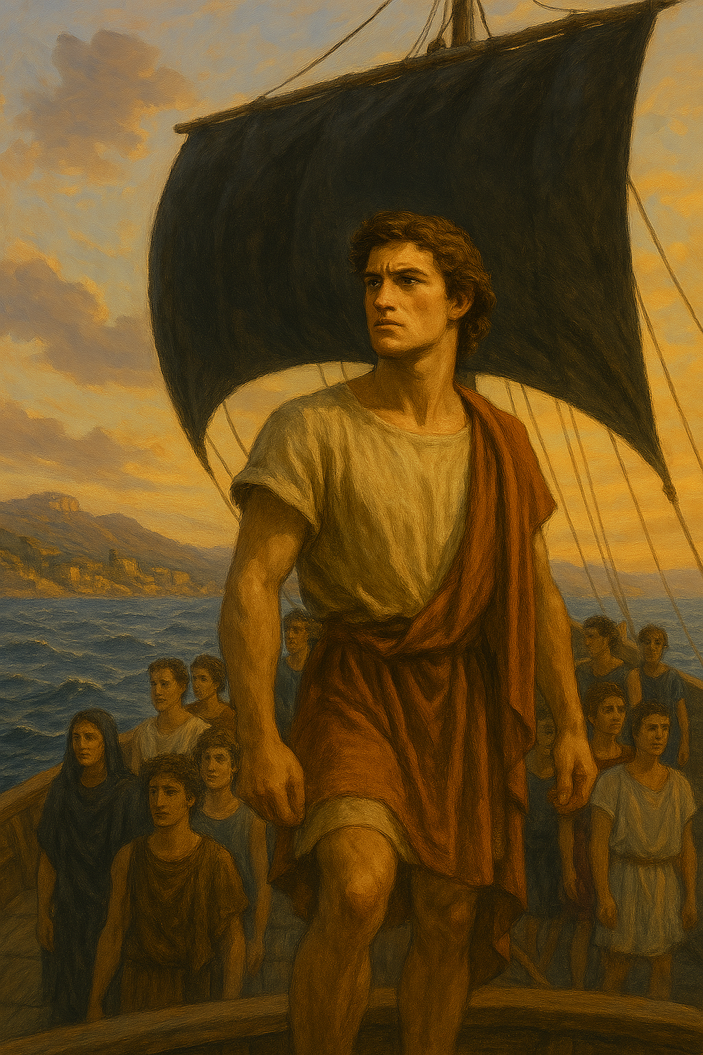 바다는 잔잔했지만, 배 안의 분위기는 무겁기만 했다. 동행한 젊은이들의 눈에는 두려움이 가득했다. 테세우스는 조용히 그들에게 다가가 다정하게 말을 건넨다.